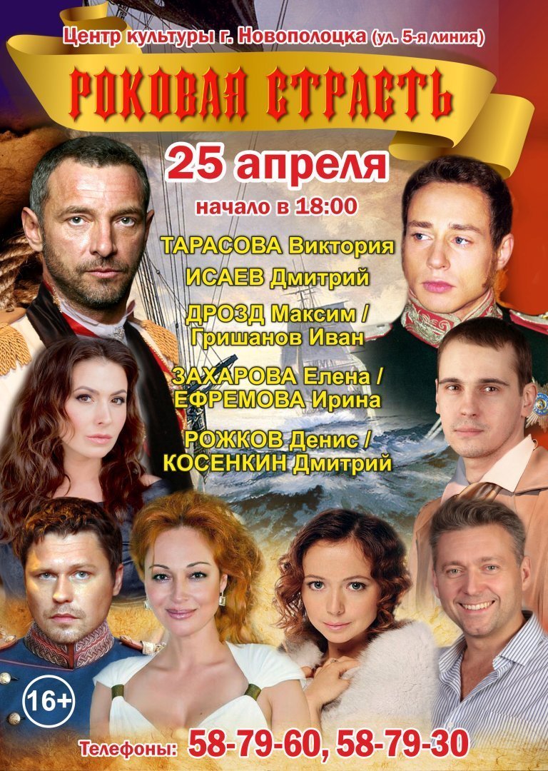 25 апреля в 18.00 на сцене Центра культуры г.Новополоцка Любовная, лирическая мелодрама «РОКОВАЯ СТРАСТЬ» ❤